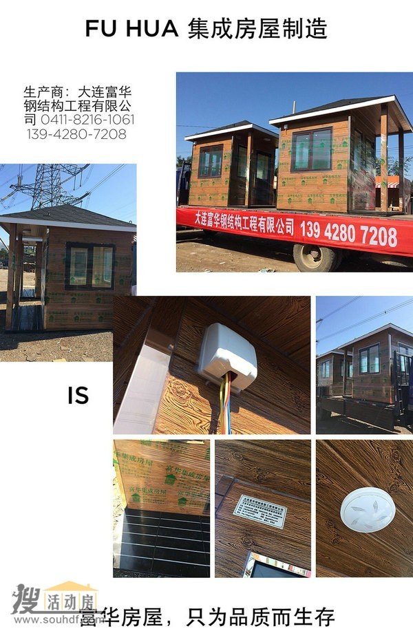 大连富华恒润实业有限公司(原名:大连富华钢结构工程有限公司)是辽宁专业的一家自行生产销售岗亭的企业。企业拥有自已的设计团队,有加工厂房。顾客可以按自已的想法和设计人员交流,自已定设计自已定样式,自已选择岗亭材质。供货及时,负责售后维修。客户可到厂验收,如有不满意可进行改进,验收满意后,安排发货。成功完成的岗亭项目有:大连万达广场、辽宁省、赵庄万象天成、兴隆台周际置业、太原恒大地产、保定定州、唐山火炬广场等。客户满意度高。欢迎百度搜索:大连富华钢结构工程有限公司 获得更多资讯。